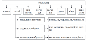 - Складання опорної схеми «Жанри фольклору».