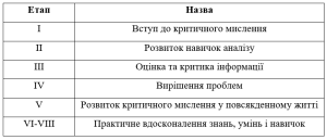 - знайомство з перешкодами та стереотипами, які можуть перешкоджати критичному мисленню;