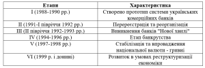 Таблиця 1.1 – Етапи становлення банківської системи України