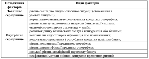 Таблиця 3.1 – Класифікація факторів кредитних ризиків банківської системи