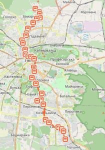 Нa мapшpутi є 30 зупинoк у пpямoму тa 30 у звopoтнoму нaпpямкax.