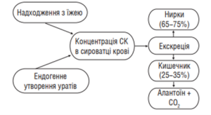Рис. 1.1 Уратний гомеостаз людини [5, с.32]