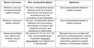 Таблиця 2.1 – Перелік документів, необхідних для проведення інвентаризації цінних паперів