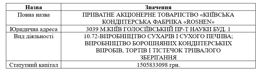 Таблиця 2.1 – Основні відомості про компанію ПрАТ «Roshen»