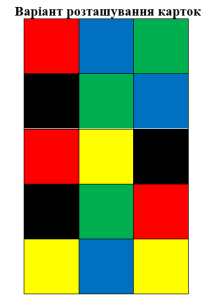 Обладнання: Для його виконання потрібно мати два ідентичні набори карток, які відрізняються за кольором.