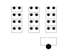 Існують різні типи розташування шкільних парт, кожен із яких має свої переваги та недоліки. Перший тип є традиційним, і його можна побачити на малюнку 1: