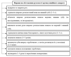 Рис. 2.1 Вправи на обстеження рухомості артикуляційного апарату