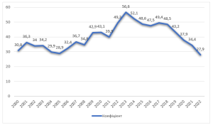 Рисунок 2.1 – Динаміка коефіцієнта заміщення з 2000 по 2022 рр.