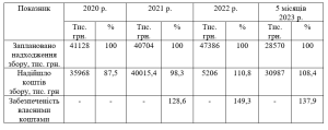 Отже, у 2022 році планувалося надійшло 41128 тис. грн., а фактично надійшло 35968 тис. грн., що становить 87,45%. У Донецьк було заплановано 12786 тис. грн., а отримано 8764 тис. грн., що складає 67%. Також у 2022 році, за планом мали надійти 40704 тис. грн., а насправді надійшло 40015 тис. грн., що становить 98,30%. Забезпеченість власними коштами склала 128,6% (потрібно було 31128 тис. грн).
