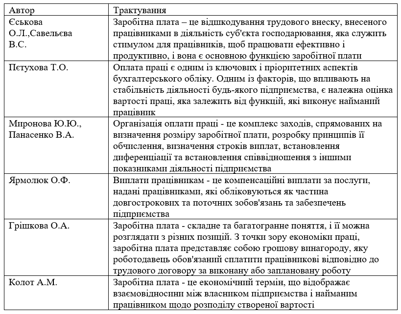 Таблиця 1.1. Трактування понять пов’язаних із організацією праці та її оплатою