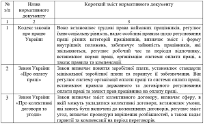 Таблиця 1.3. Огляд нормативно-правових актів з регулювання питань організації та обліку праці та її оплати