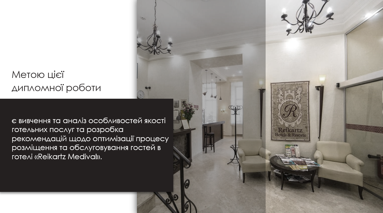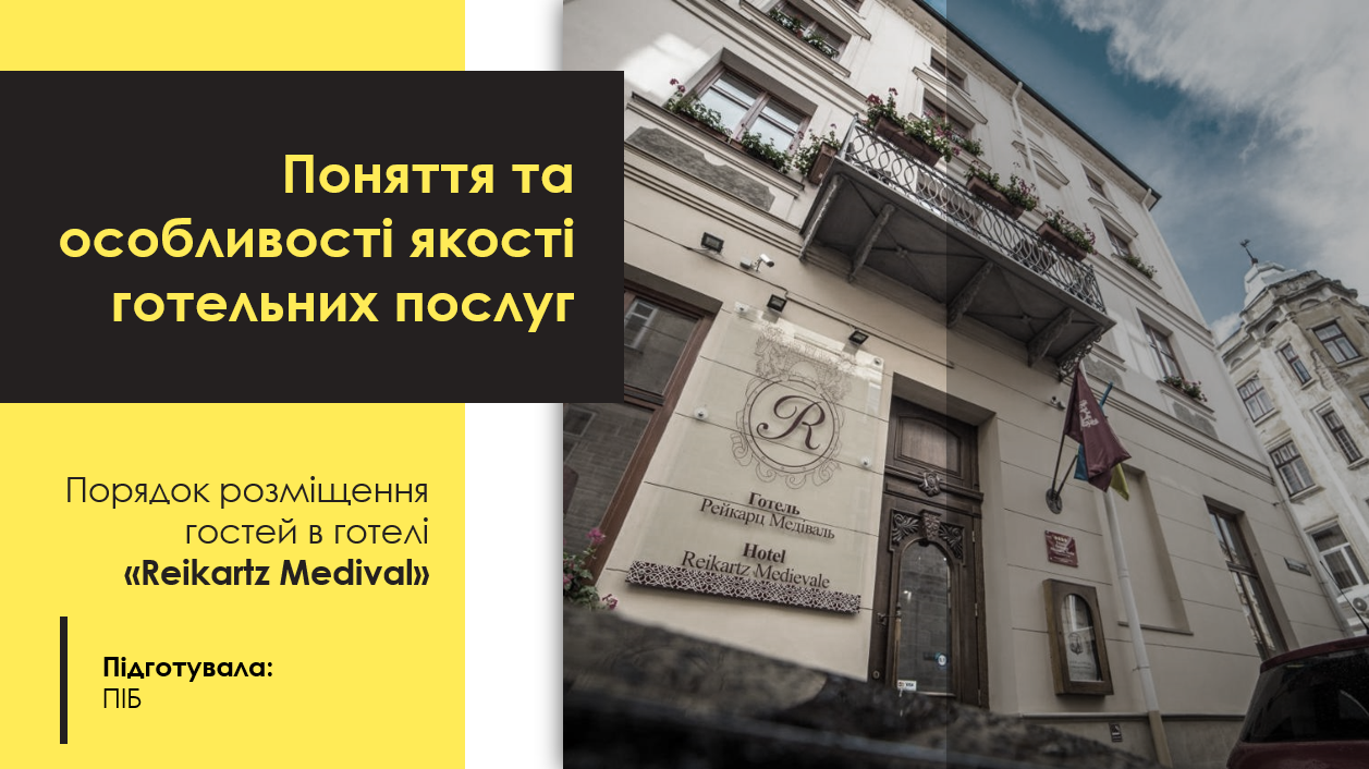 “Поняття та особливості якості готельних послуг. Порядок розміщення гостей в готелі Reikartz Medival”