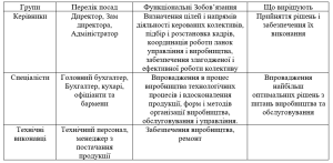 Структура управління ресторану «Клара-Бара» закріплена статутом підприємства. У ресторані «Клара-Бара» існує лінійно – функціональна структура управління, показана в таблиці 1.1