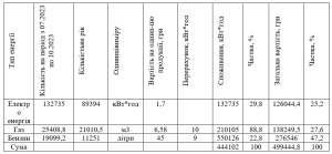 Таблиця 1.5. Співвідношення обсягів споживання та вартості енергоносіїв (надані підприємством)