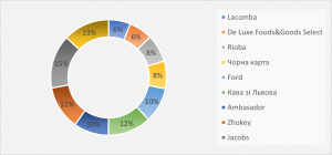 Аналізуючи рис. 1, можна сказати, що всесвітньо відомі бренди Jacobs, Lavazza, Кава зі Львова та Zhokey є найпопулярнішими серед українців. Вони залучають споживачів за допомогою інноваційних стратегій, злиттів або поглинань компаній з метою використання їх ключових переваг, таких як інтенсивна науково-дослідна діяльність, створення дистриб’юторських мереж і розробка нових продуктів, щоб розширити свій асортимент і зайняти невикористані ринки.